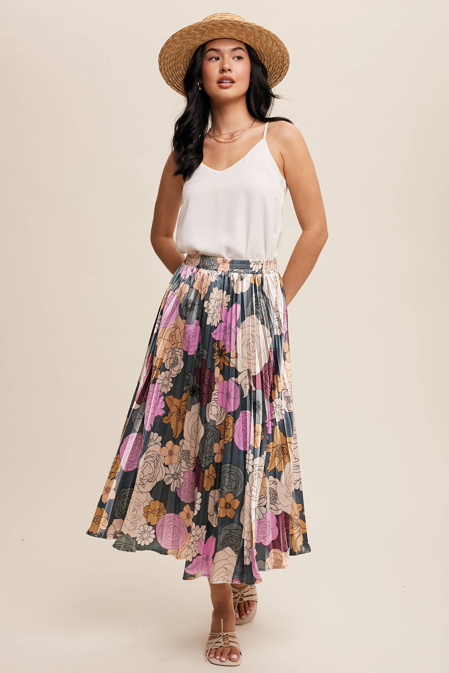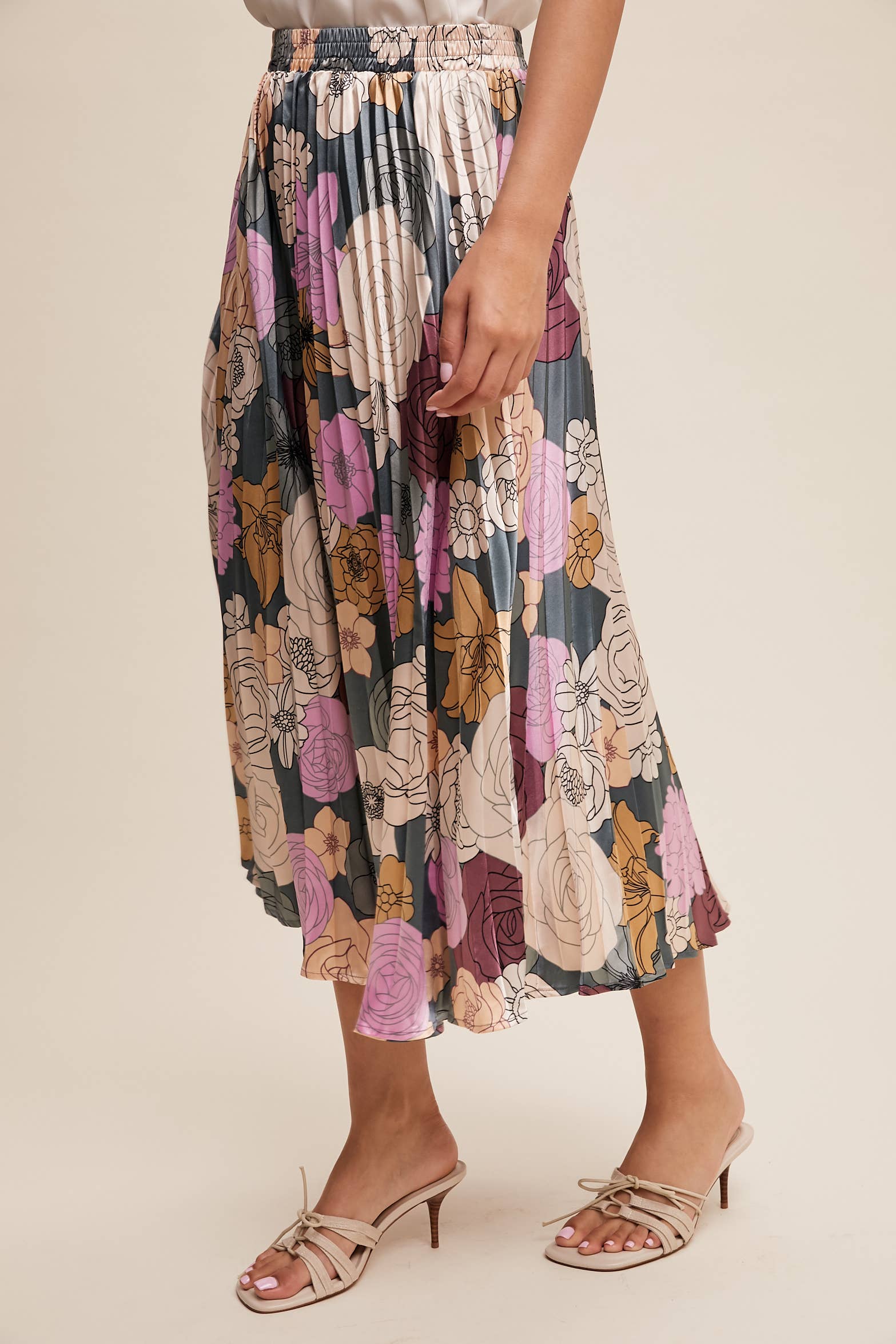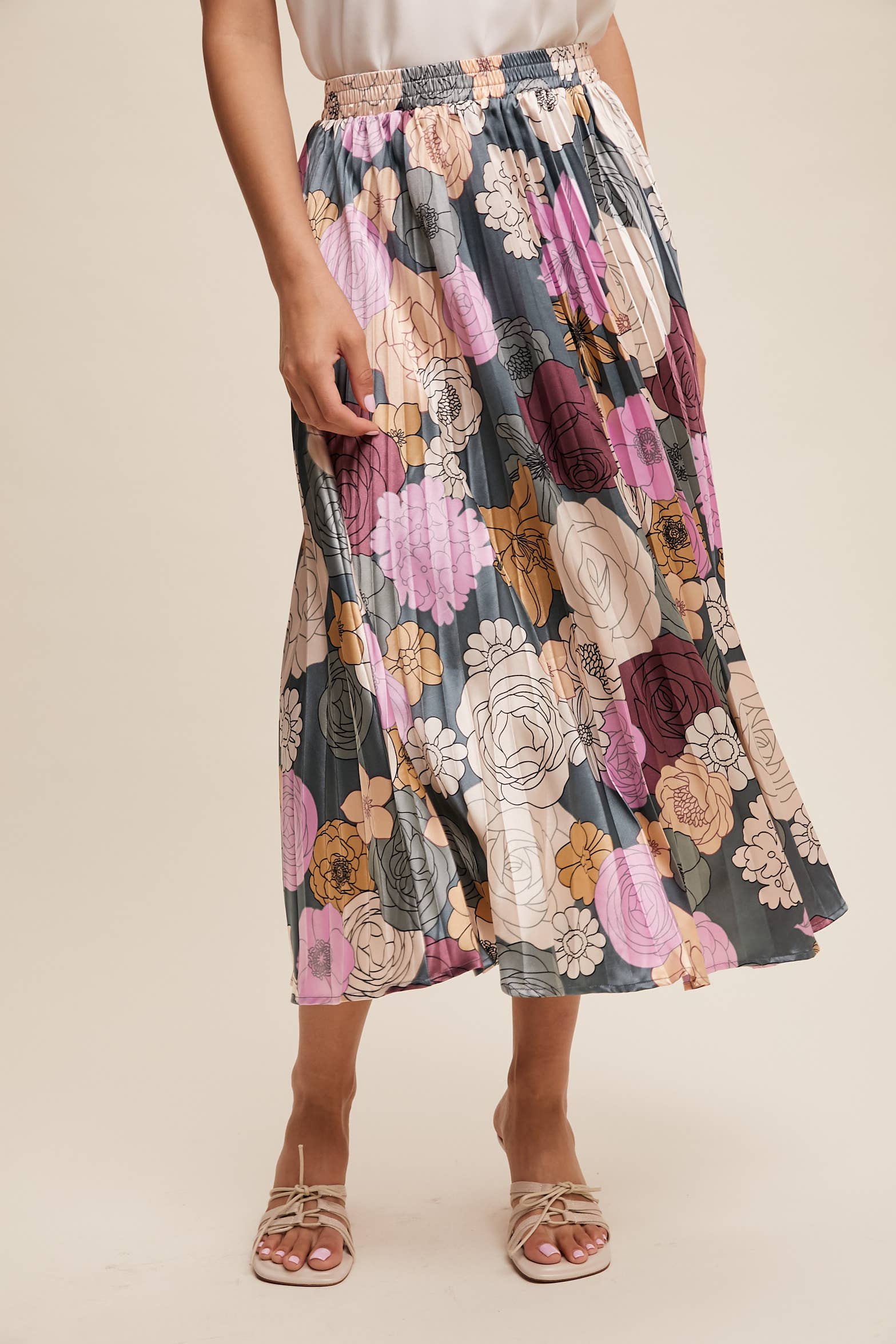 Bold Floral Pleated Midi Skirt