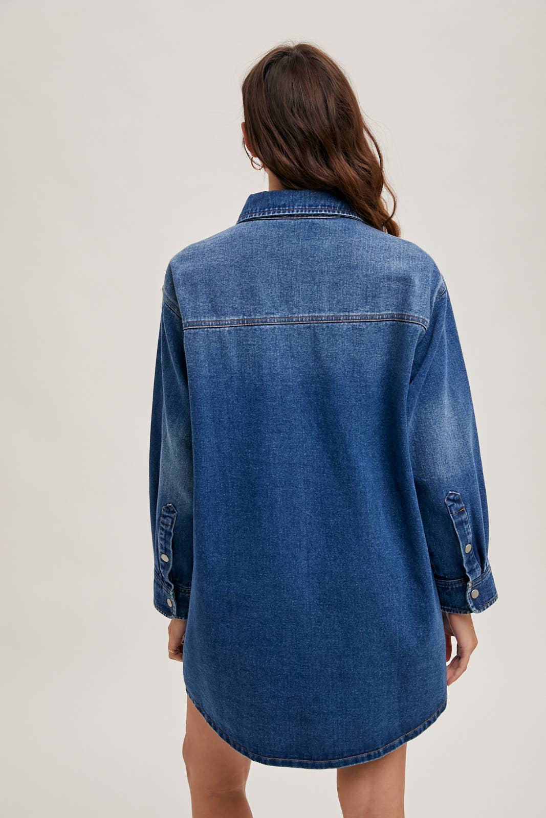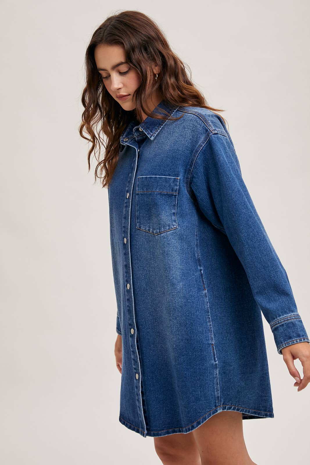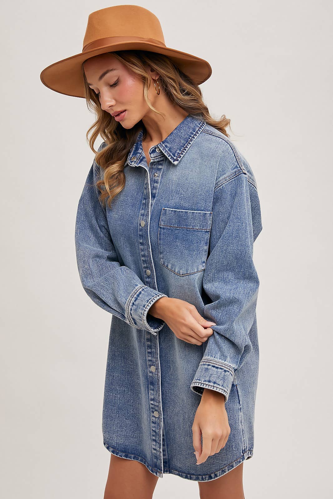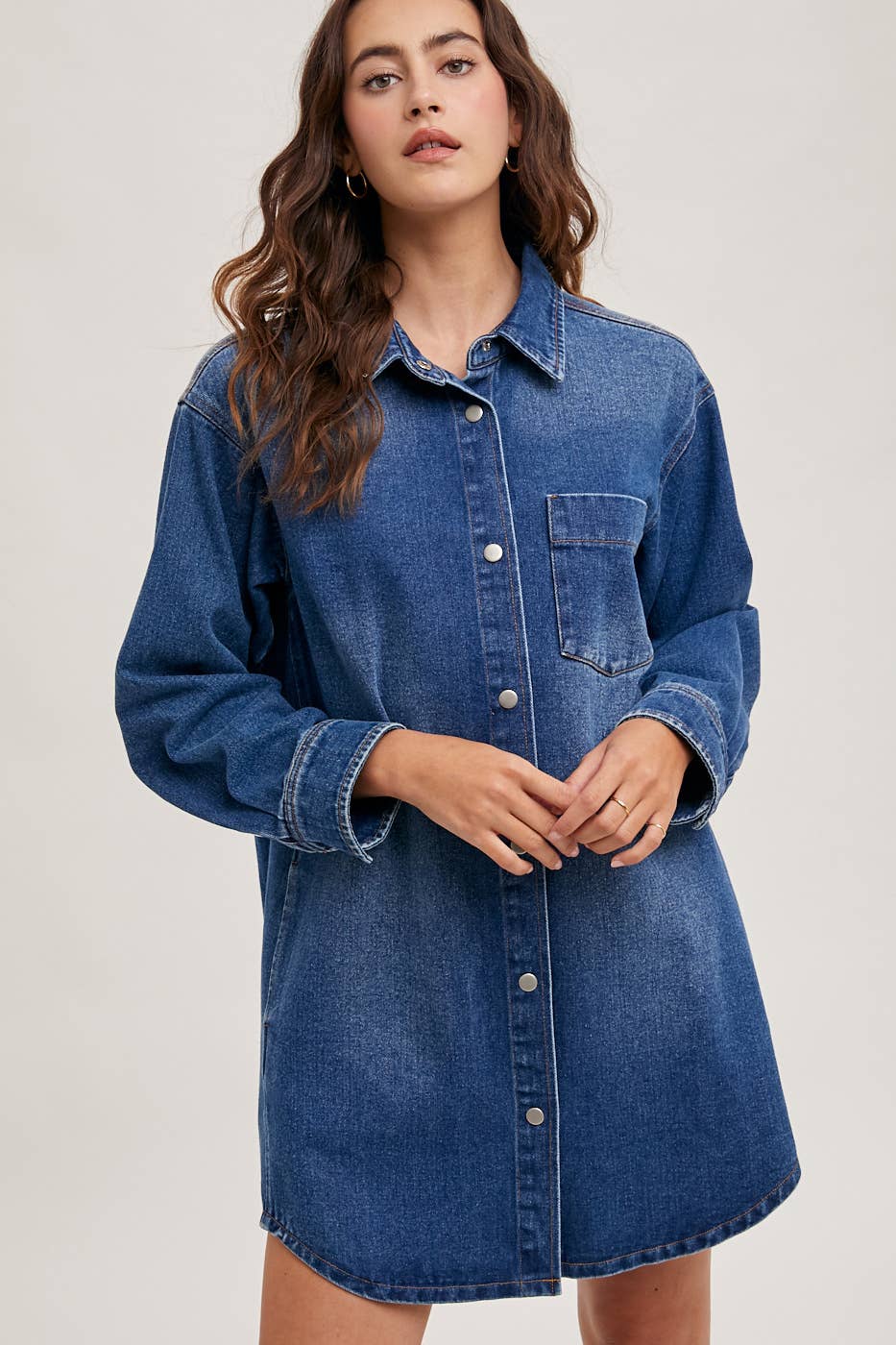 DENIM BUTTON DOWN SHIRT DRESS WITH POCKETS